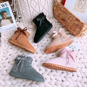 2020新款网红手工系带侧边蝴蝶结雪地靴皮毛一体保...