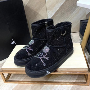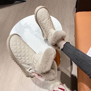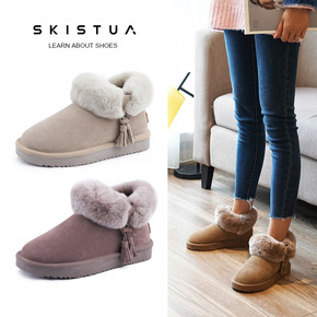SKISTUA冬季新款保暖兔毛雪地靴加绒牛皮裸靴平...