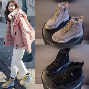 女羊皮毛一体冬2019新款系带加绒时尚短筒学生防滑...