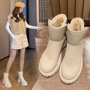 DR3352雪地靴女皮毛一体短筒女鞋冬季靴子棉鞋一...