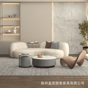 北欧科技布客厅沙发弧形轻奢小户型创意沙发网红侘寂风...