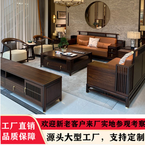 新中式沙发组合现代客厅乌金木实木酒店别墅民宿真皮自...