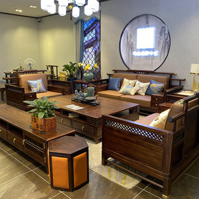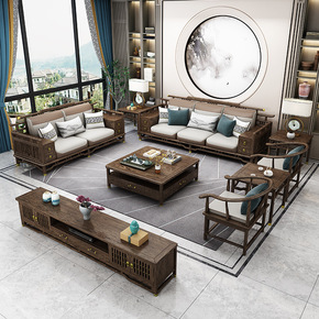 新中式实木沙发组合现代简约客厅别墅禅意乌金木储物家...