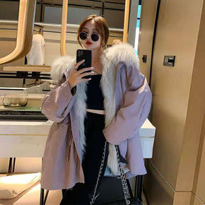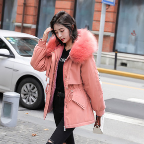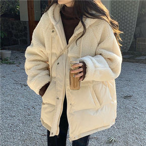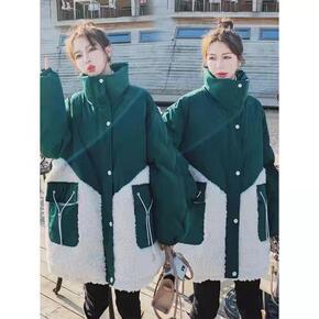 羊羔毛拼接羽绒棉服女中长款冬季新款宽松外套小个子韩...