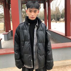 冬季潮牌棉衣男潮流挡风宽松加厚保暖PU皮面包服外套...