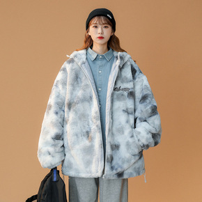 羊羔毛拼接棉服女设计感小众oversize潮外套2...