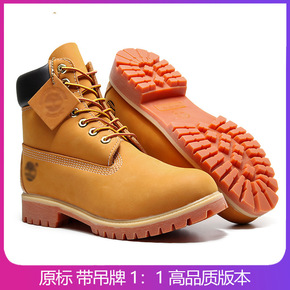 天伯伦大黄靴男秋冬踢不烂大高帮工装靴女头层牛皮户外...