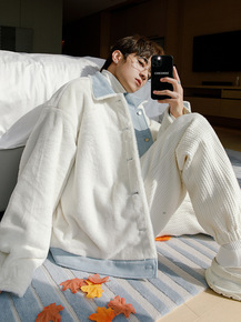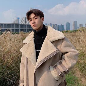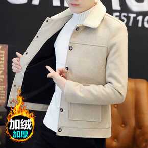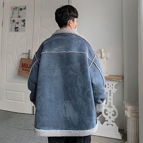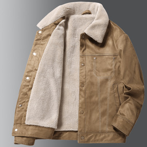 秋冬季男士加绒加厚青年羊羔毛外套男青少年棉衣麂皮绒...