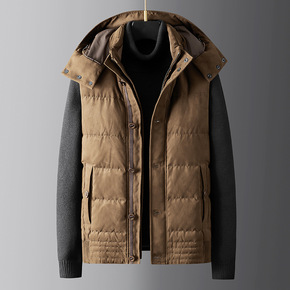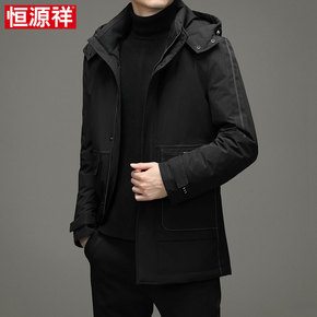 恒源祥2021冬季男士加厚棉衣中青年纯色长款上衣装...