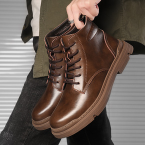男鞋马丁靴冬季新款潮流英伦风加绒保暖靴男高帮工装靴...