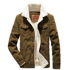 2019男装冬季新款加绒加厚保暖灯芯绒休闲翻领棉衣...