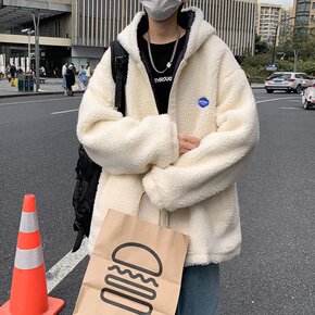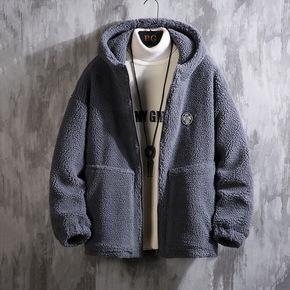 羊羔绒外套男士秋冬季加绒加厚潮牌ins工装棉衣大码...