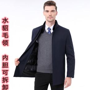 2021新款冬装男式羽绒服中年可拆内胆水貂毛领外套...