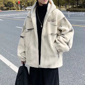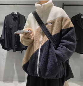 跨境羊羔毛外套男冬季2021新款拼色厚毛绒棉服男装...