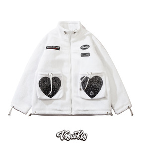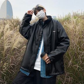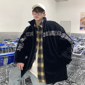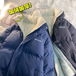 港风冬款羊羔毛棉衣情侣装立领韩版男装宽松休闲中性棉...