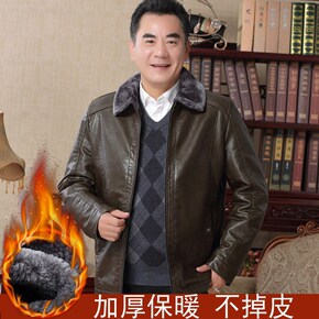 爸爸冬装外套中老年皮衣皮棉衣老人爷爷男装冬季加绒加...