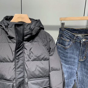 冬季白鸭绒立领连帽厚款羽绒服外套男美式休闲保暖工装...