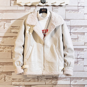 2021冬季新款男式皮棉衣 韩版时尚羊羔绒加厚翻领...