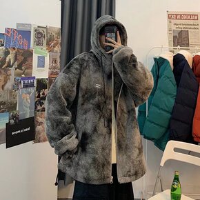 羊羔毛绒外套男2021年新款冬季棉服ins港风情侣...