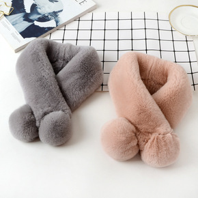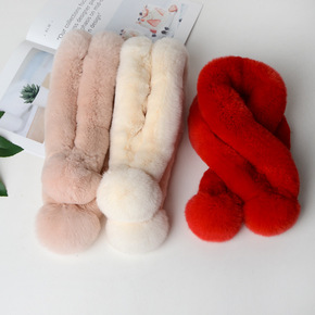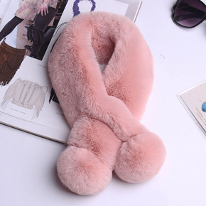 獭兔毛毛球围脖韩版秋冬季保暖围巾学生潮女毛绒围巾皮...