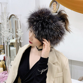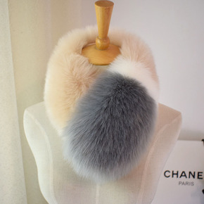 狐狸毛皮草围脖秋冬季韩版弹力脖套发带头套女编织围巾...