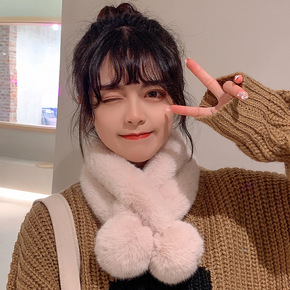 冬季保暖女士仿皮草狐狸毛兔毛交叉毛毛领子韩版百搭围...