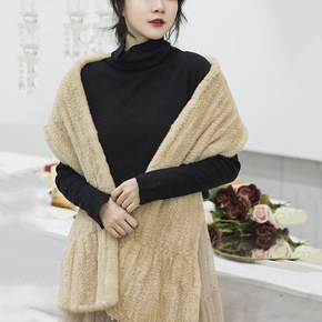 厂家供应外贸速卖通水貂毛围巾皮草编织女冬季交叉户外...