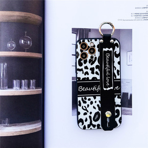 适用欧美风苹果13promax手机壳腕带支架豹纹苹...