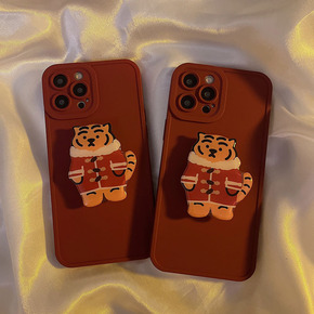 适用酒红色喜庆老虎支架华为nova7手机壳p30p...