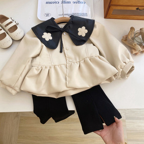 童装2022女童秋季新款洋气花朵娃娃领外套女孩时尚...