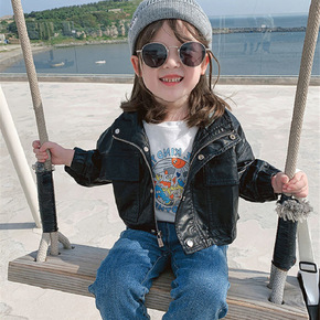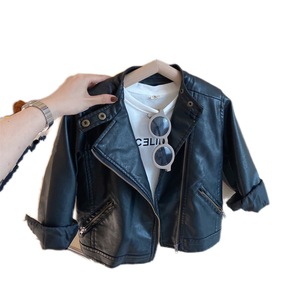 男女童皮衣机车短款软皮PU夹克上衣21秋冬装新款外...
