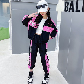 CN51956 童装女童休闲宽松拼色机车服套装20...