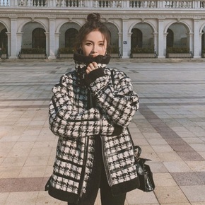 幻彩星空尼龙小方格亮面黑丝色织羽绒服女装裤装抗静电...