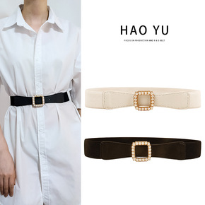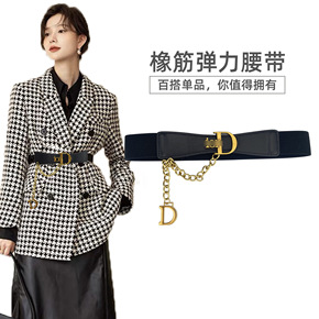 新款腰带女简约百搭休闲配裙子大衣装饰羽绒服松紧宽腰...