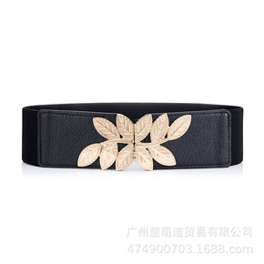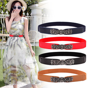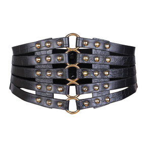 欧美时尚复古镂空铆钉松紧宽腰封女士百搭羽绒服装饰裙...