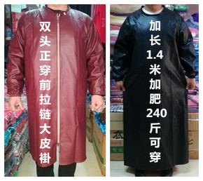 冬季防水防油污围裙加长皮革pu前拉链正穿加大加肥棉...