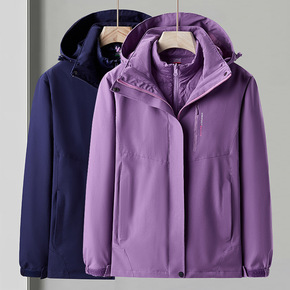 可印LOGO冲锋衣男批发户外三合一可拆卸防寒服女两...