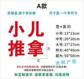 小儿推拿玻璃门窗贴纸字文字广告墙贴自粘不干胶刻字...