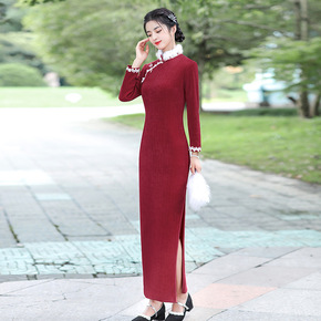 【唐梦语】2021年新款长款旗袍单层毛领旗袍 ...