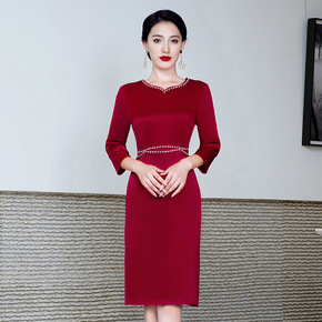 婚礼妈妈婆婆礼服改良旗袍酒红色简约大气醋酸缎喜婆婆...