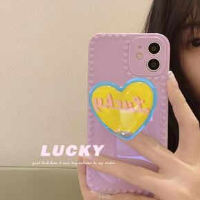 适用电镀银love蓝粉爱心苹果11手机壳13pro...