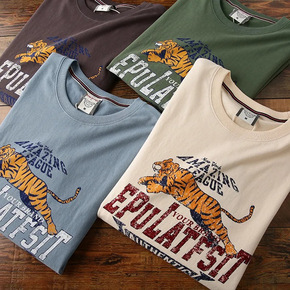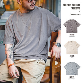 马登工装 日系复古270g仿麂皮绒短袖T恤宽松软糯...