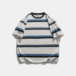 南夏乔装 2022夏季新款男士撞色条纹印花圆领T恤...