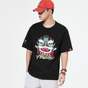 宽松休闲男式纯棉圆领拳击猫印花t桖潮衣服定制新款K...