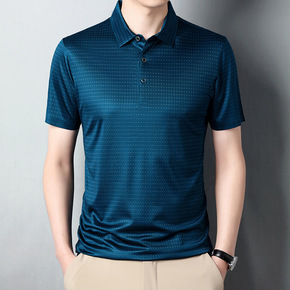 中老年男装爸爸装夏季短袖T恤男士翻领冰丝T恤汗衫宽...
