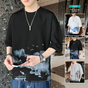 中国风男短袖T恤潮流青少年学生薄款上衣夏款圆领休闲...