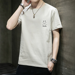 男士短袖t恤夏季棉质潮牌笑脸半袖2022新款宽松青...