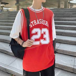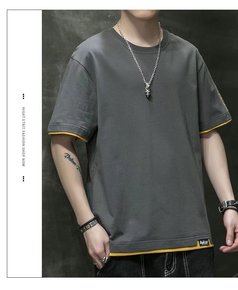 假两件短袖t恤男潮牌宽松学生ins百搭运动半袖上衣...