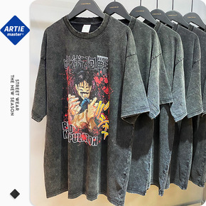 ARTIE男装|新款动漫卡通游戏印花做旧男t恤暗黑...