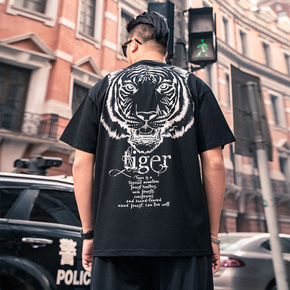 2021夏季新款休闲短袖潮圆领宽松男士T恤加肥加大...
